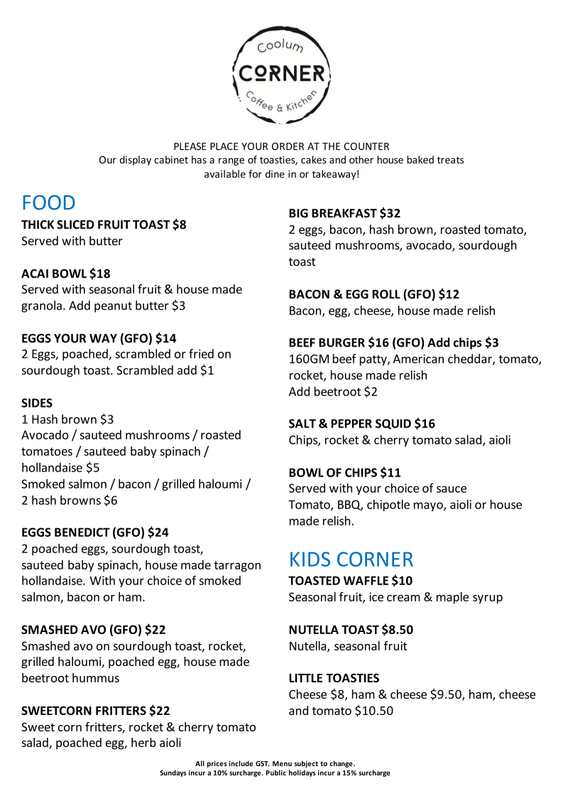 Coolum Corner Menu